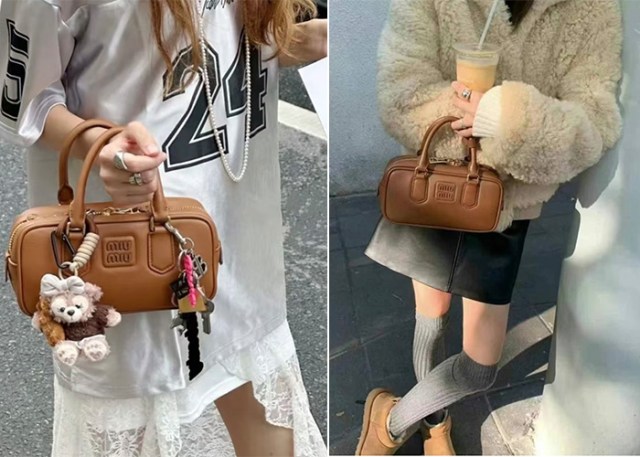 此外,Miu Miu也有不少值得一看的好物,像是Jessica同款的帆布x皮革包:
