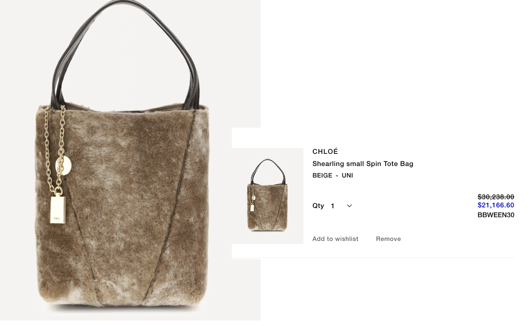 ( CHLOÉ Shearling small Spin Tote Bag ) Chloe這款毛絨Spin小水桶包真的太可愛了,秋冬搭配特別有氛圍感!折後價NT.21,166,貨到收稅約NT.23,705,參考NAP台灣站NT.67,200,等於台灣35折!這樣的折扣力度簡直讓人驚呆了。