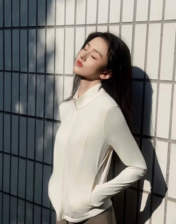 宋祖兒的窄版上衣則是這款Slim-Fit Sun Protection Jacket with Stand Collar UPF 100+ AL819,搭配她的Sun Protection Hat UPF 100+ BM715,真的超有型。