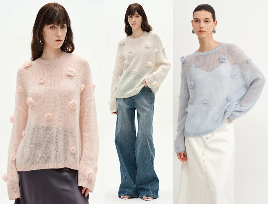 ♥ Sally Pink Handcrafted Sweater in Angora Mohair Knit,這件充滿浪漫氛圍的立體花朵裝飾針織上衣,原價9折後再疊加85折台灣優惠碼【Plusheart15】,最終只要76折!