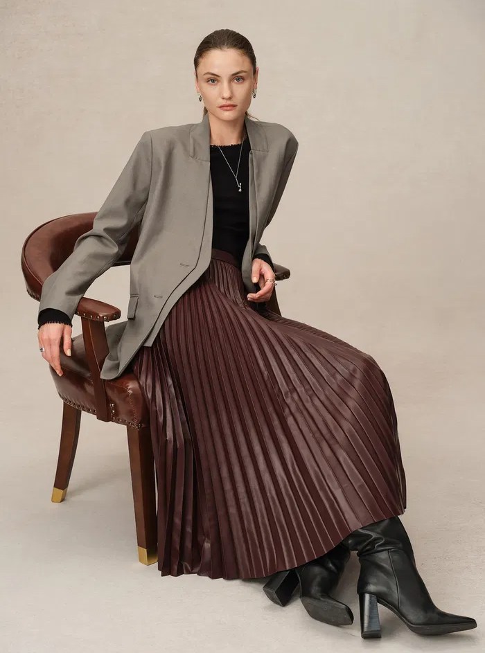 ♥ Joyce Okogba with Fabrique Lila Sun Pleated Leather Skirt in Faux Fur,這條仿皮百褶裙搭配85折台灣優惠碼【Plusheart15】,讓你輕鬆入手!
