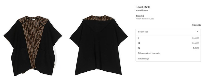 這款Fendi Kids Logo-Intarsia Knitted Cape雙面斗篷真的是熱門單品,特別是最難買到的黑棕配色現在終於補貨啦!3號售價為36493元含稅,4號則是41877元含稅。對比成人款已經漲到六萬七的價格,這樣的折扣力度相當於54~62折呢!