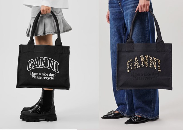 最後推薦Ganni的Logo壓紋托特包,三色可選,實用又時尚: