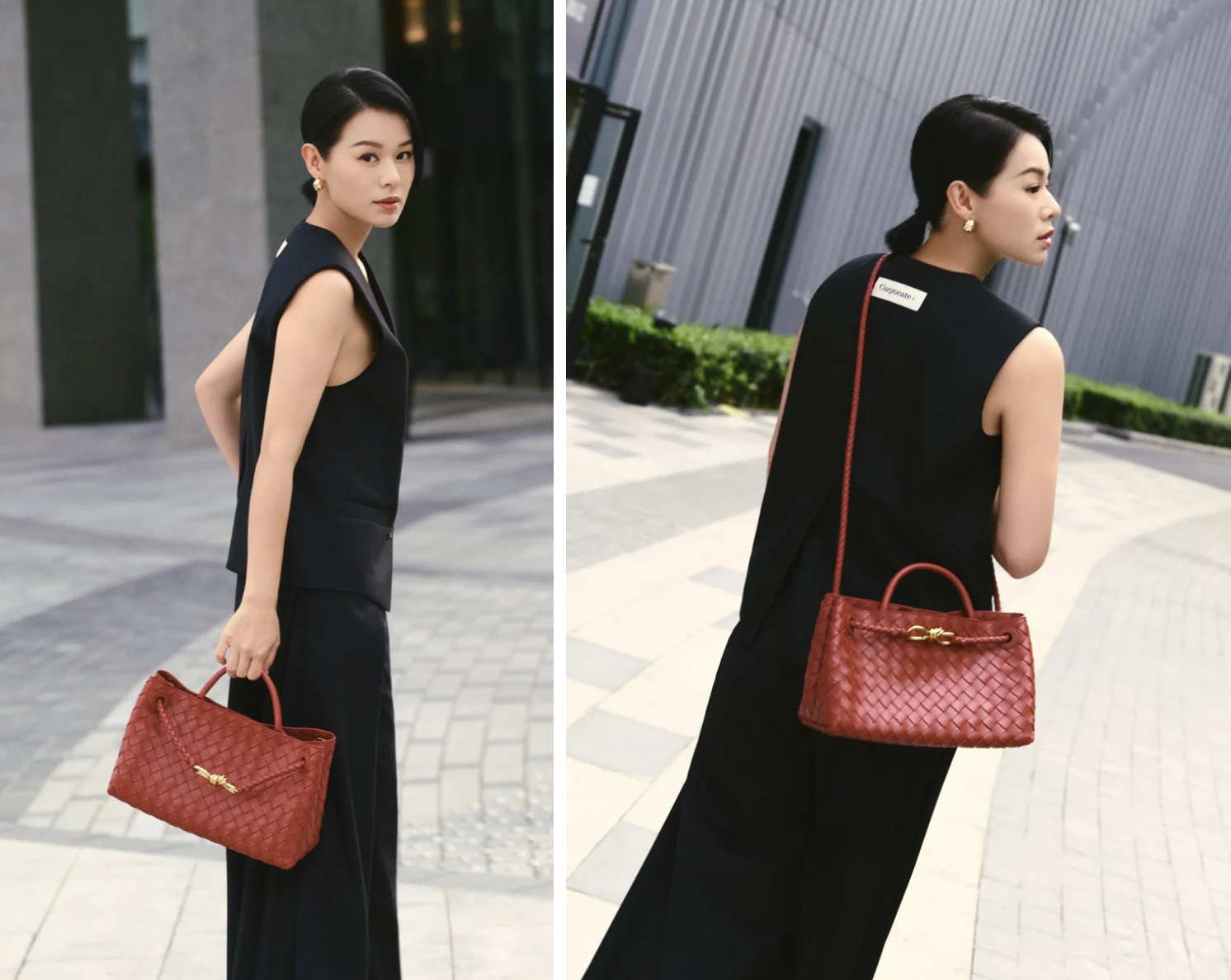 - Bottega Veneta East West Andiamo Bag:胡杏兒同款紅色BV長型Andiamo包。