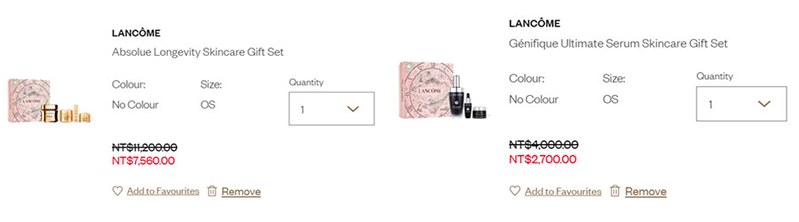 ♥ Lancôme Génifique Ultimate Serum Skincare Gift Set,這款蘭蔻小黑瓶套裝包含50mL(台灣售價4650元)+ 10mL(價值930元),以及超未來肌因亮眼精粹霜5mL(價值993元),總價值6573元,現在折上折後僅需2700元+稅 = 42折。
