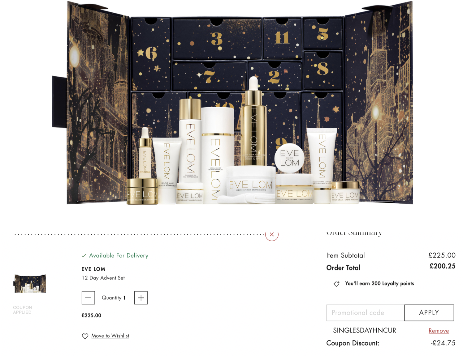 ( EVE LOM New In 12 Day Advent Set )原本說不參加的EVE LOM倒數月曆,現在也加入折扣了!折後價僅200英鎊,原價值高達500英鎊,相當於4折!裡面包含多款經典熱門商品,喜歡的朋友千萬別錯過~