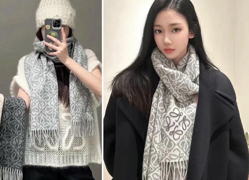 ♥ Loewe Anagram scarf,這款Loewe新款灰色圍巾,搭配台灣優惠碼【MID2025】可享七折優惠。