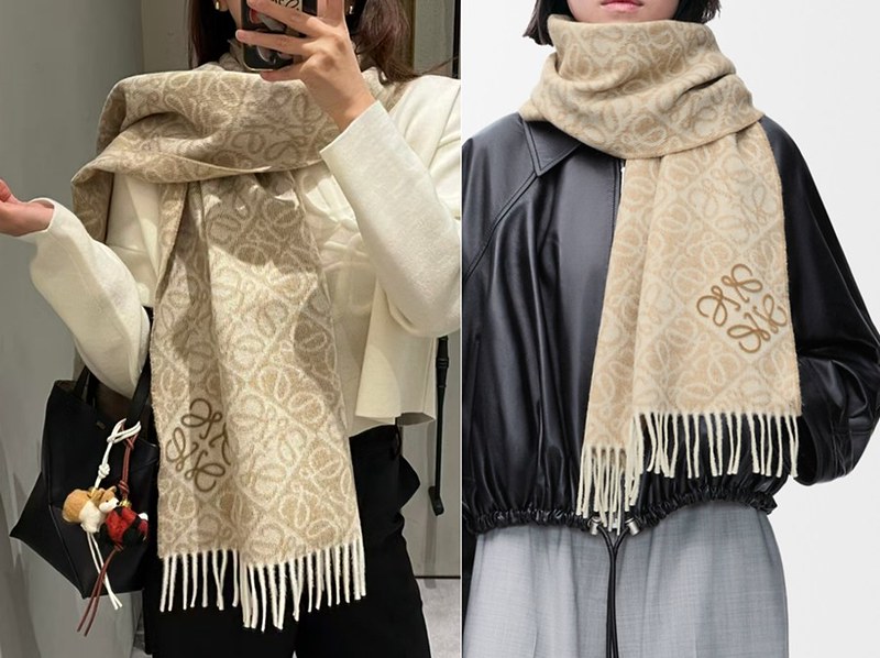 ♥ Loewe Anagram scarf,還有一款奶茶色的新款圍巾,一樣用台灣折扣碼【MID2025】可以七折入手。
