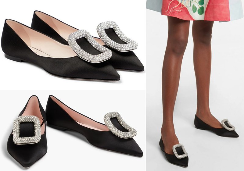 ♥ ROGER VIVIER Viv’ Choc水鑽緞面平底鞋,使用台灣優惠碼【NEXT20】後僅需877.22美元(含稅含運),比原價至少省下6折,划算到不行!