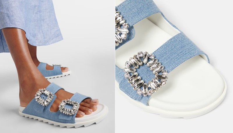 ♥ ROGER VIVIER Slidy Viv’水鑽勃肯涼鞋,台灣買家可享784.3美元優惠價,約為原價的44折,尺碼也很齊全。