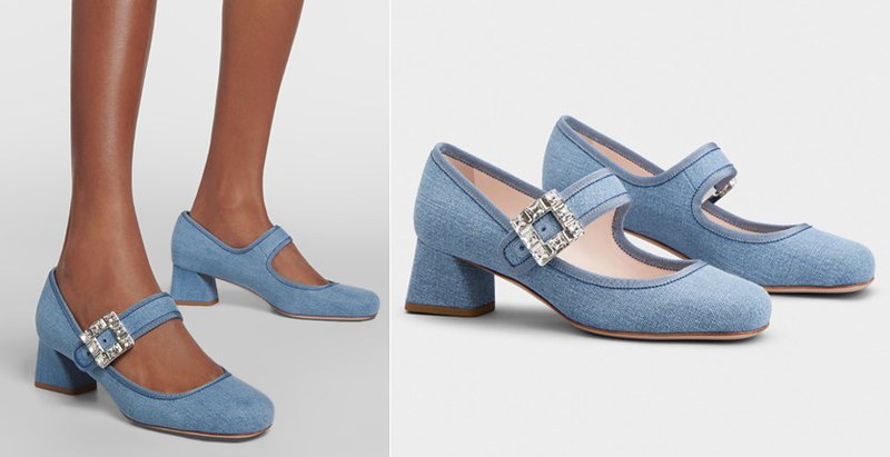 ♥ ROGER VIVIER Très Vivier水鑽丹寧瑪麗珍鞋,搭配台灣折扣碼【NEXT20】後只需756.7美元(含稅含運),相當於原價的42折!尺碼選擇也很多樣。