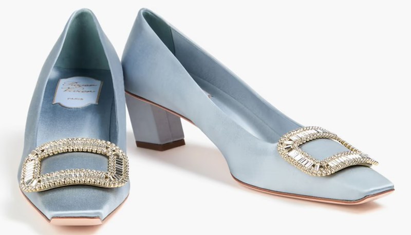 ♥ ROGER VIVIER Belle Vivier灰藍色緞面水鑽高跟鞋,台灣價格1173美元(含稅含運),約為原價的48折,優雅設計讓人無法抗拒。