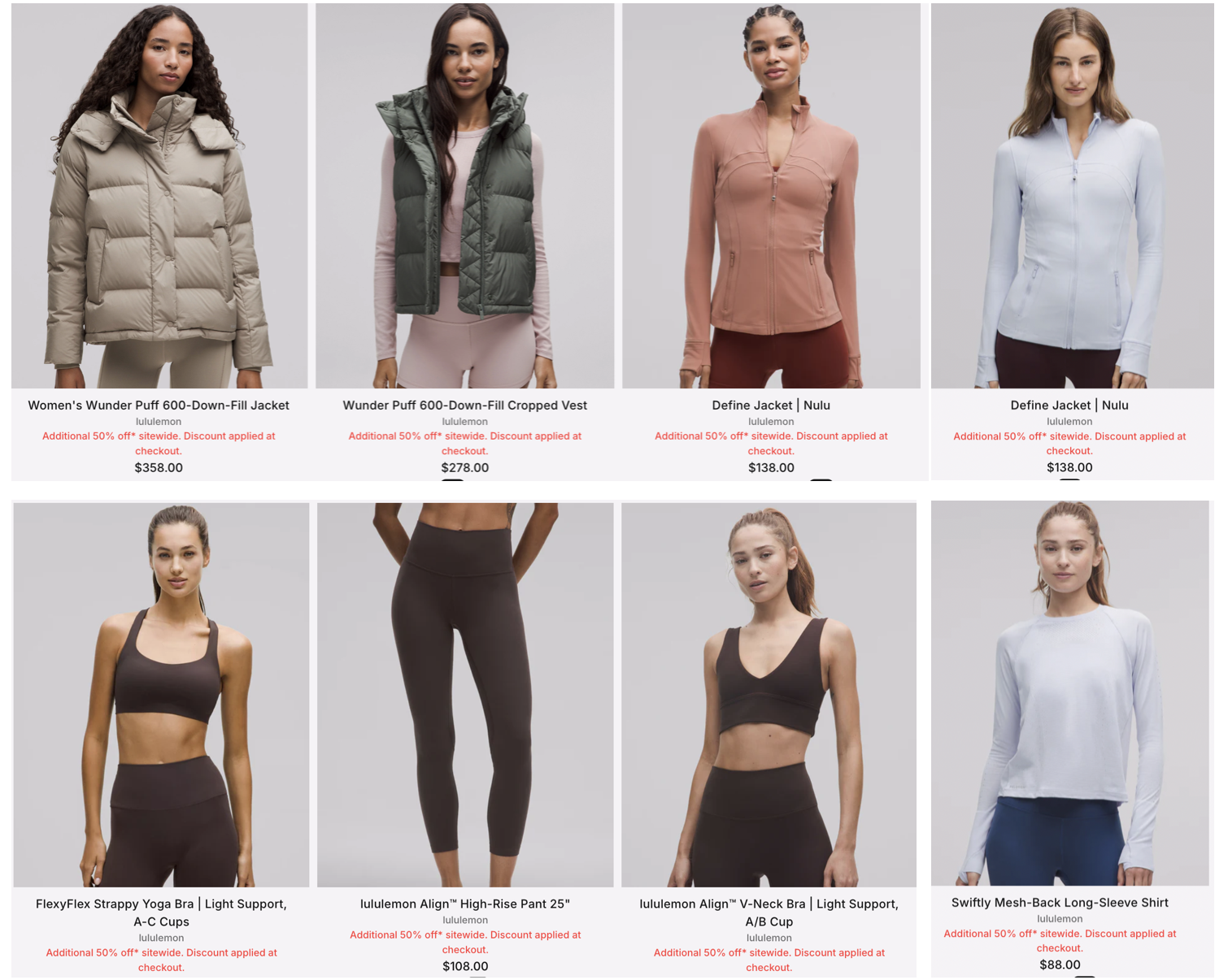 另外,還有更多驚喜折扣等著你!像是這件lululemon Women’s Wunder Puff 600-Down-Fill Jacket,這可是連lululemon官網都沒有打折的熱門單品,現在居然5折就能帶回家!使用台灣折扣碼更方便結帳喔~