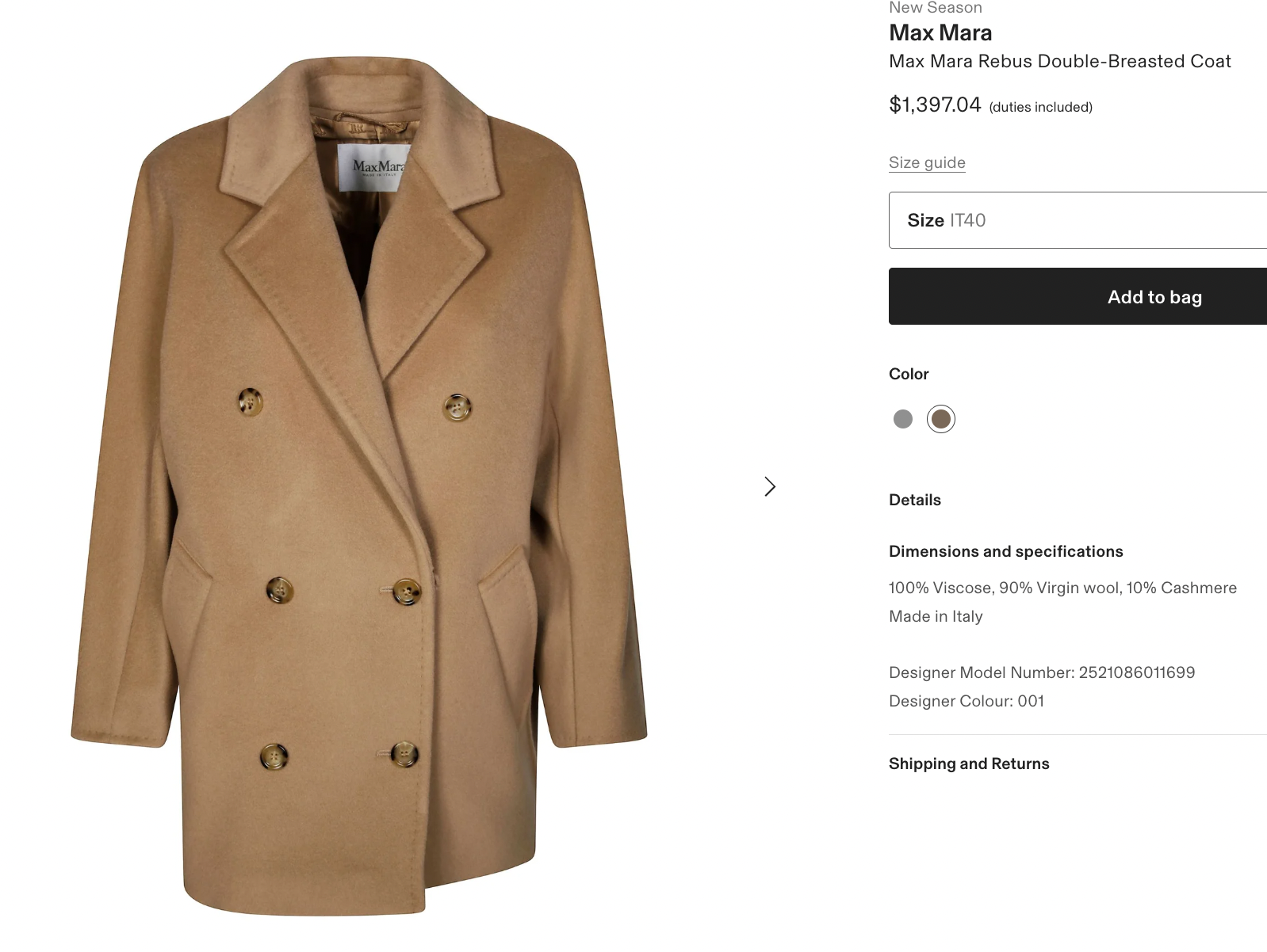 哈囉大家好,我是小迪!今天要跟大家分享的是經典MAX MARA 101801大衣的超值折扣情報。這款大衣已經有一段時間沒有出現折扣了,數量非常有限,記得切換到美國站購買,這樣可以免關稅哦!