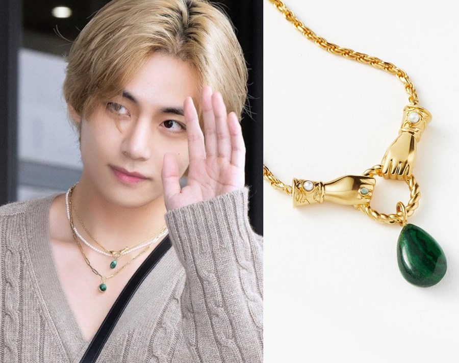 ♥ 推薦商品二:(HARRIS REED IN GOOD HANDS DROP PENDANT NECKLACE),這款金泰亨同款的小手掌項鍊目前69折,設計感十足,絕對是搭配造型的好選擇!