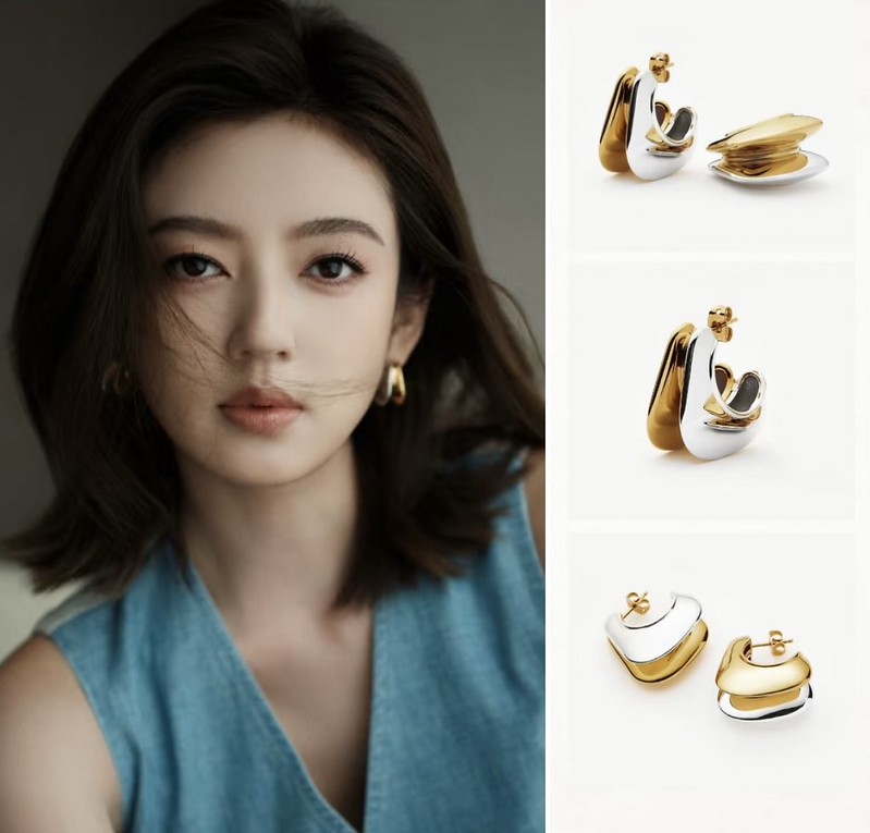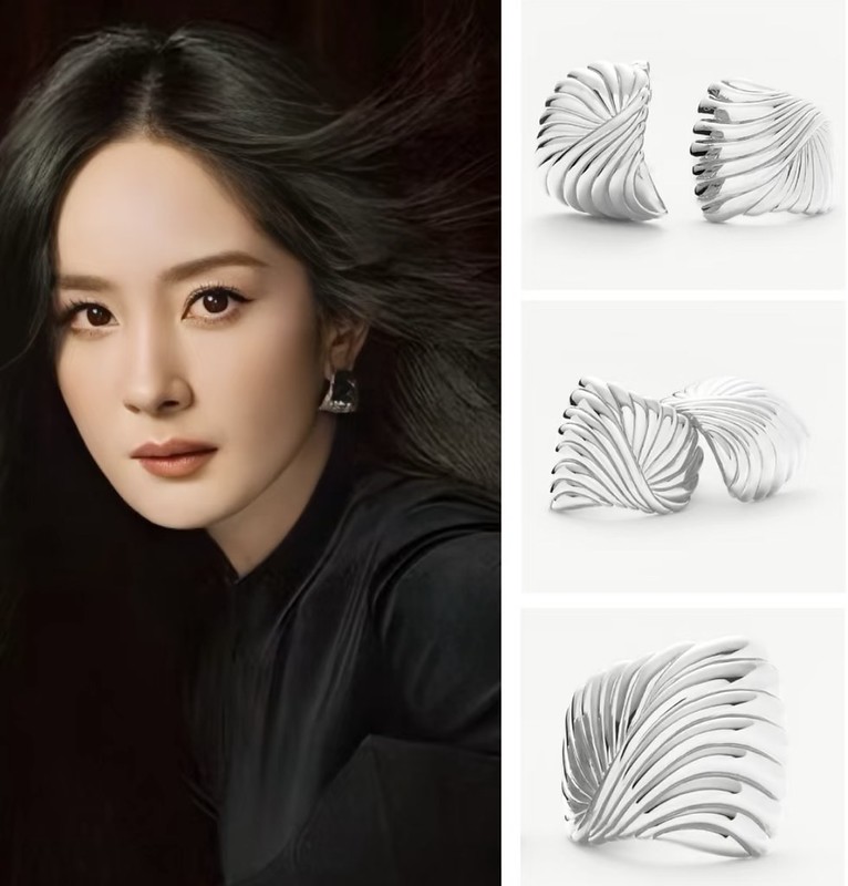 ♥ 推薦商品三:(Ripple Oversized Stud Earrings),這款Hera系列的水波紋大耳環,楊冪曾佩戴過的銀色款式現正七折販售,時尚又百搭!