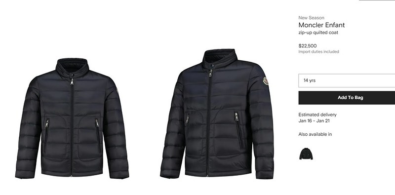 哈囉大家好,我是小迪!今天要跟大家分享一個超棒的台灣折扣碼優惠情報,Moncler童裝系列中的Acorus外套現在有驚人的48折好價!這款14Y尺寸的黑色Acorus外套只要22500元含稅(成人款原價高達46900元),真的是非常划算。