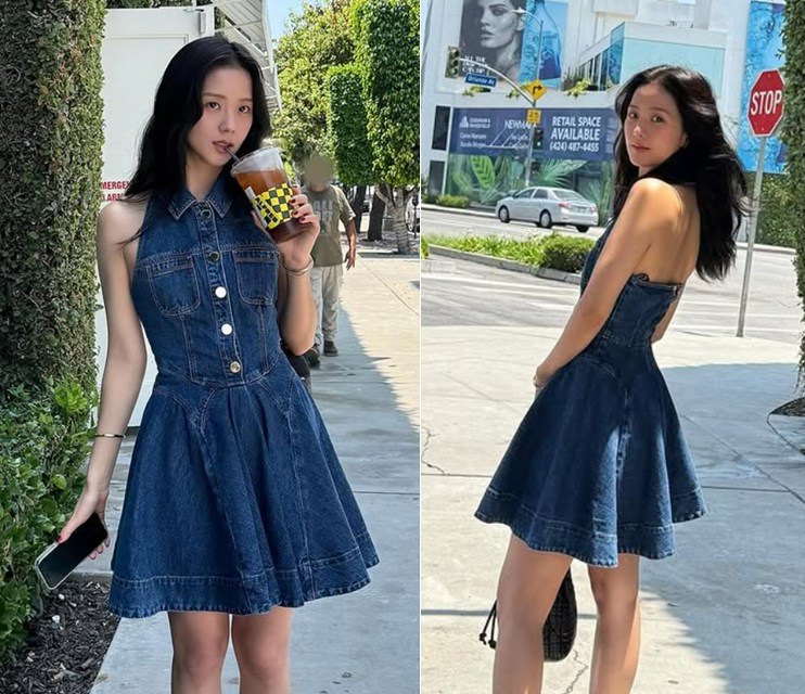 ❤️ (Self-Portrait Bridal bow-detail beaded satin minidress)。Jisoo穿的最新款洋裝,現在類似款也是八折。