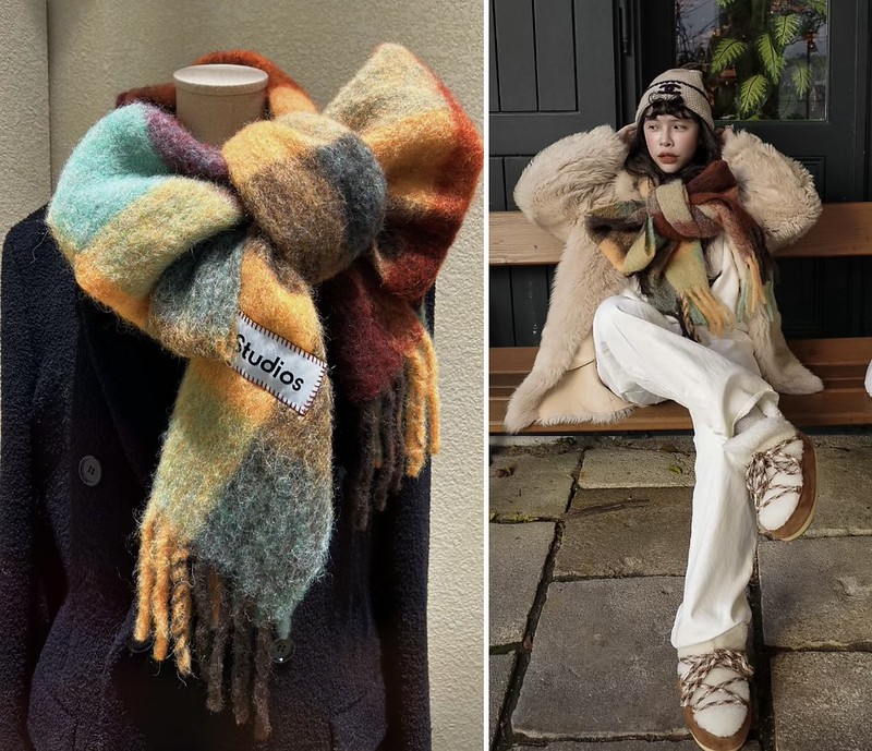 ◆ (Acne Studios Checked wool-blend scarf)。Acne Studios格子圍巾也是熱門暖色調配色7折!