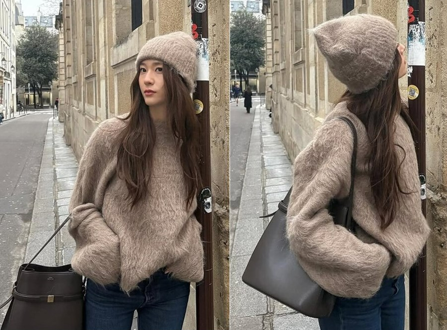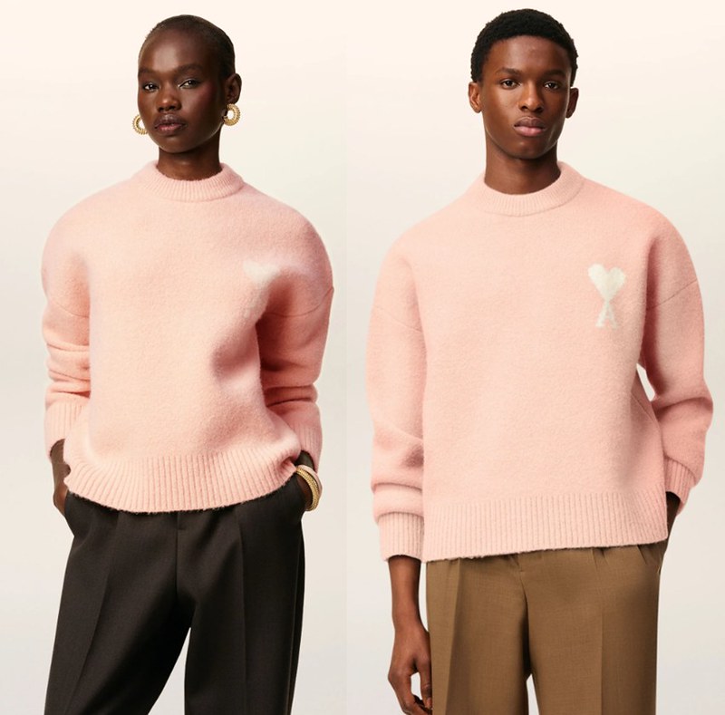 ◆ (Ami Paris Alpaca and wool-blend sweater)。AMI這季的大愛心縮小了一點看起來更秀氣,我最喜歡這個美拉德色,男女單一尺寸,我自己通常穿S碼,參考官網顏色,現在直接七折喔。