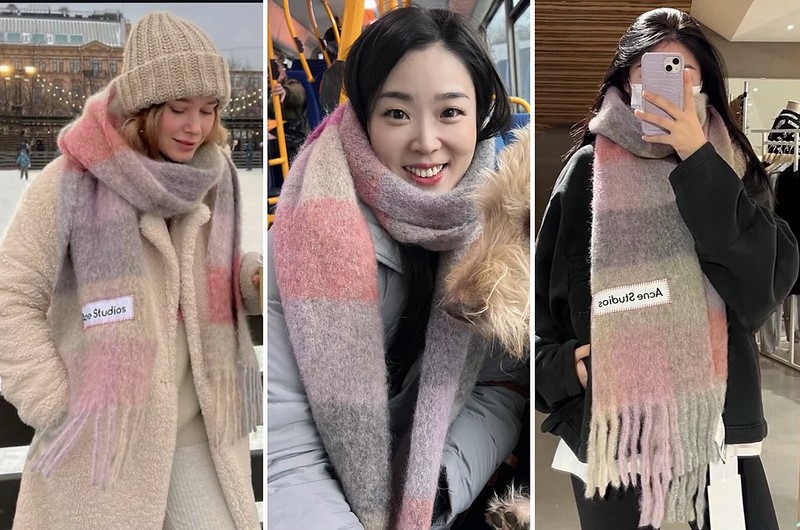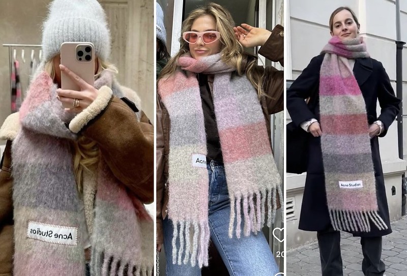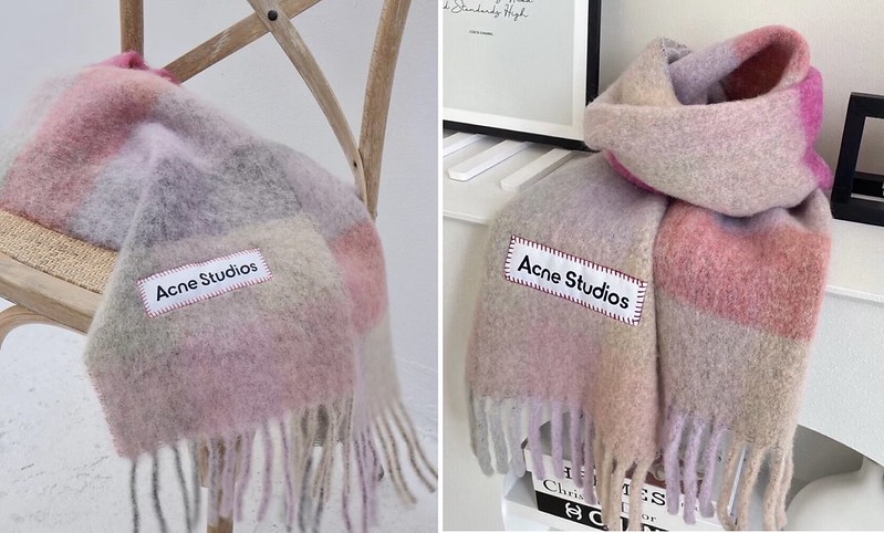 ◆ (Acne Studios Checked wool-blend scarf)。Acne Studios最熱門的灰粉色格子圍巾特價七折回歸!之前在Cettire只要有75折左右的力度就是秒殺了,甚至不用到75折,大約8折就會很快賣光,每次補貨必定每次秒殺,七折務必一定要馬上下手,這次存貨量還算多一定要跟上喔!