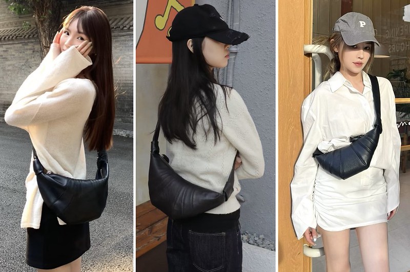 ◆ (Lemaire Croissant Small leather shoulder bag)。Lemaire可頌包小尺寸羊皮款台灣售價45300,現在這個深色近乎黑色特價820歐元,約64折!