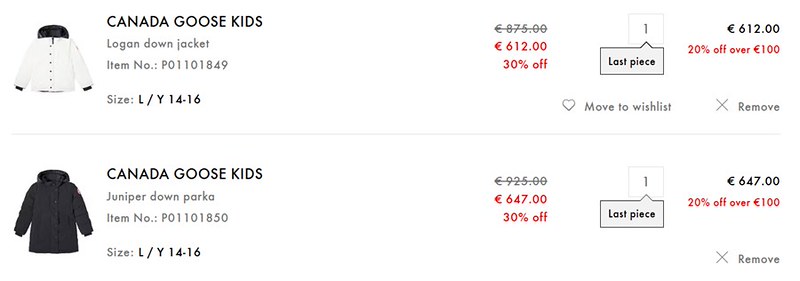這次活動的重點是,只要消費滿100歐,就可以享受入口點這裡的折上折優惠!加入購物車後會顯示額外的6至8折不等的折扣,網站上都會清楚標示,真的非常划算。