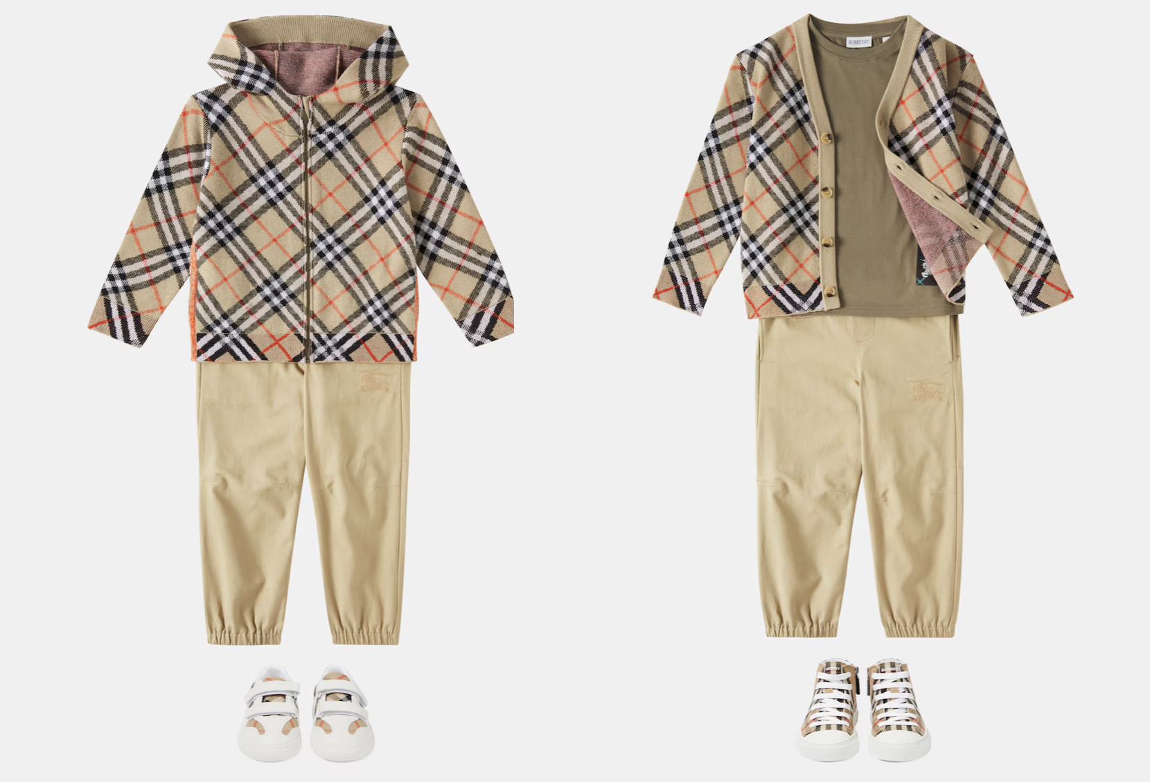 還有這件Burberry Kids Burberry Check羊毛針織外套,V領排扣設計,折後價400歐元(約NT.14151),同樣是成人款的28折,質感非常好。