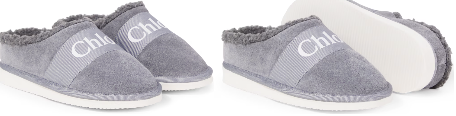 除了服裝,鞋子也有驚喜!像是這雙Chloé Kids Logo麂皮拖鞋,毛茸茸的設計看起來超級舒適。
