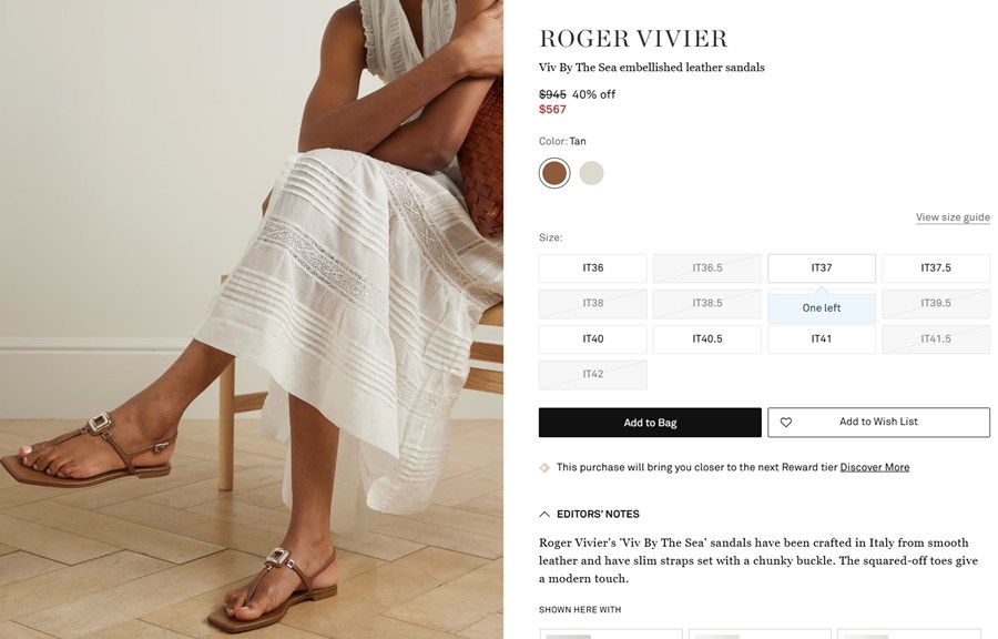 √ ( ROGER VIVIER Viv By The Sea embellished leather sandals)。同樣的款式在美國站也有6折優惠,想買的朋友可以比價看看!