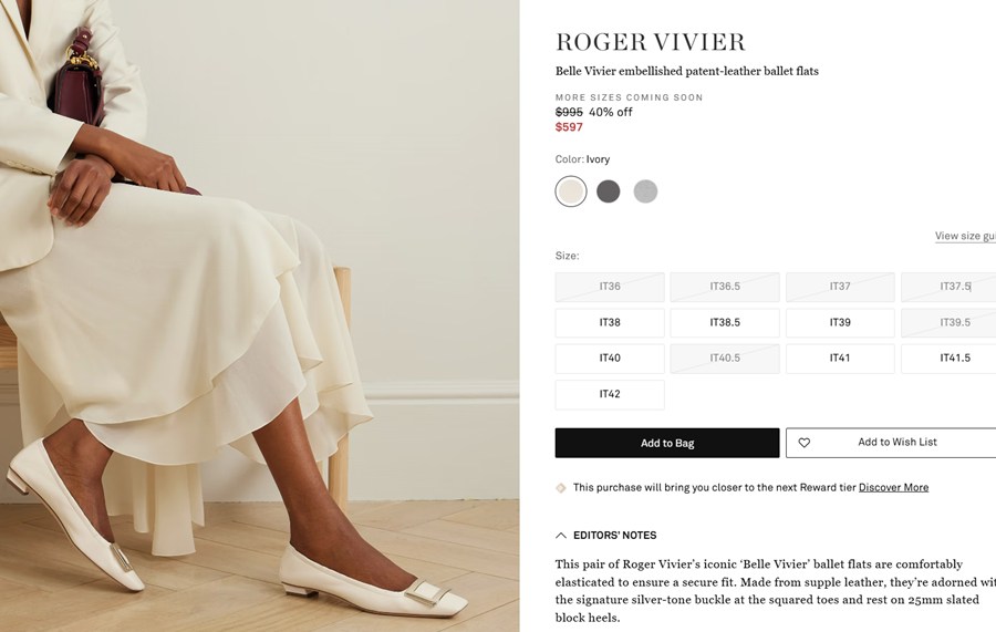 √ ( ROGER VIVIER Belle Vivier embellished patent-leather ballet flats )。這雙Roger Vivier方頭芭蕾舞鞋在美國站也有6折優惠,優雅又百搭,推薦給喜歡低調奢華風格的你!