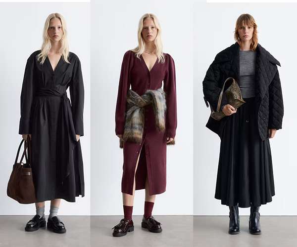 洋裝控也別錯過這兩款:Cotton Shirt Midi Dress棉質洋裝,以及Puff-Sleeve Wool Maxi Dress 100%羊毛洋裝,優雅又實穿。