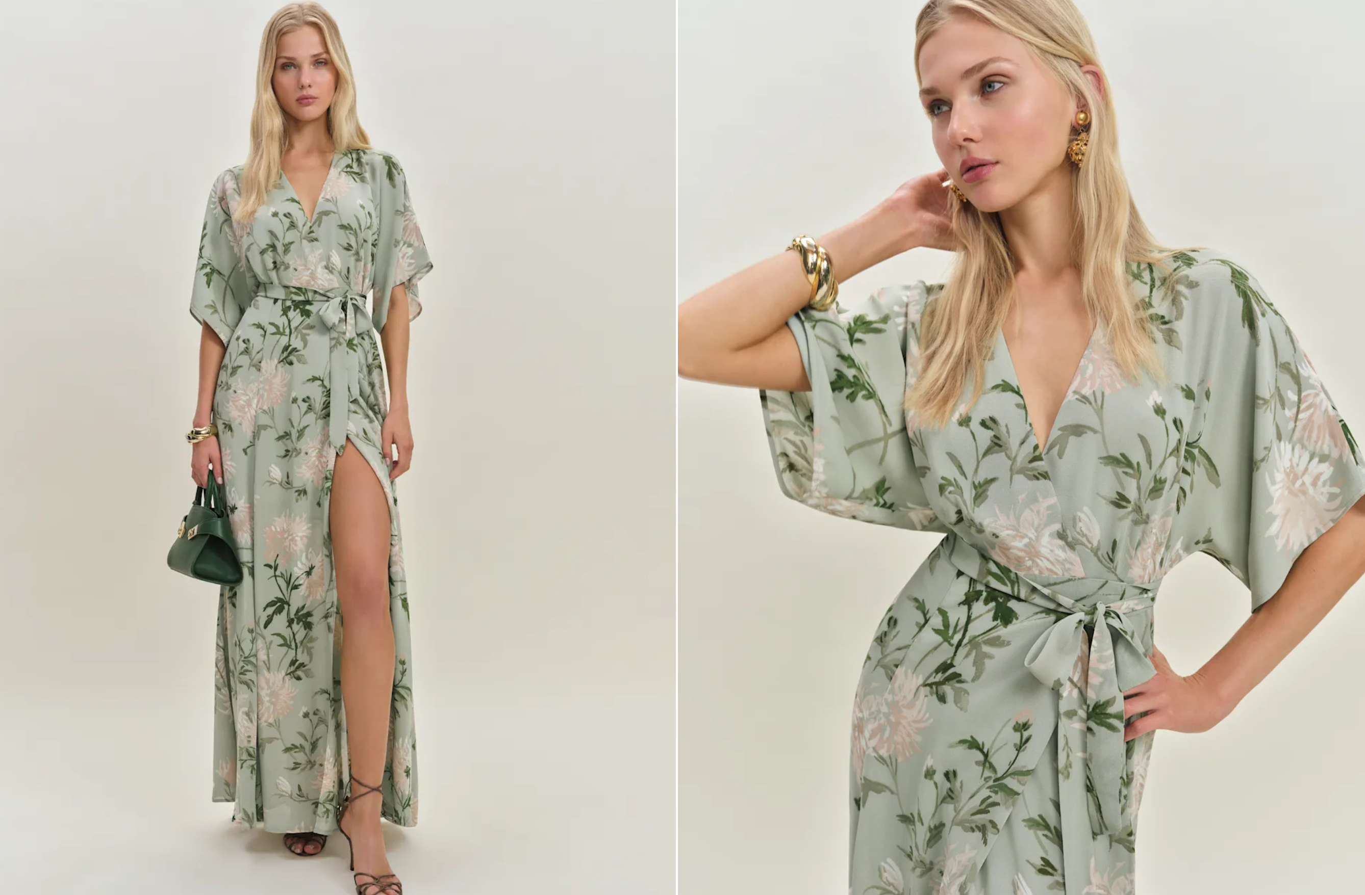 (Winslow Dress) 綠色印花洋裝,也是3折!上半身悠閒飄逸的袖子剪裁設計真的很美,推薦給喜歡獨特風格的朋友。