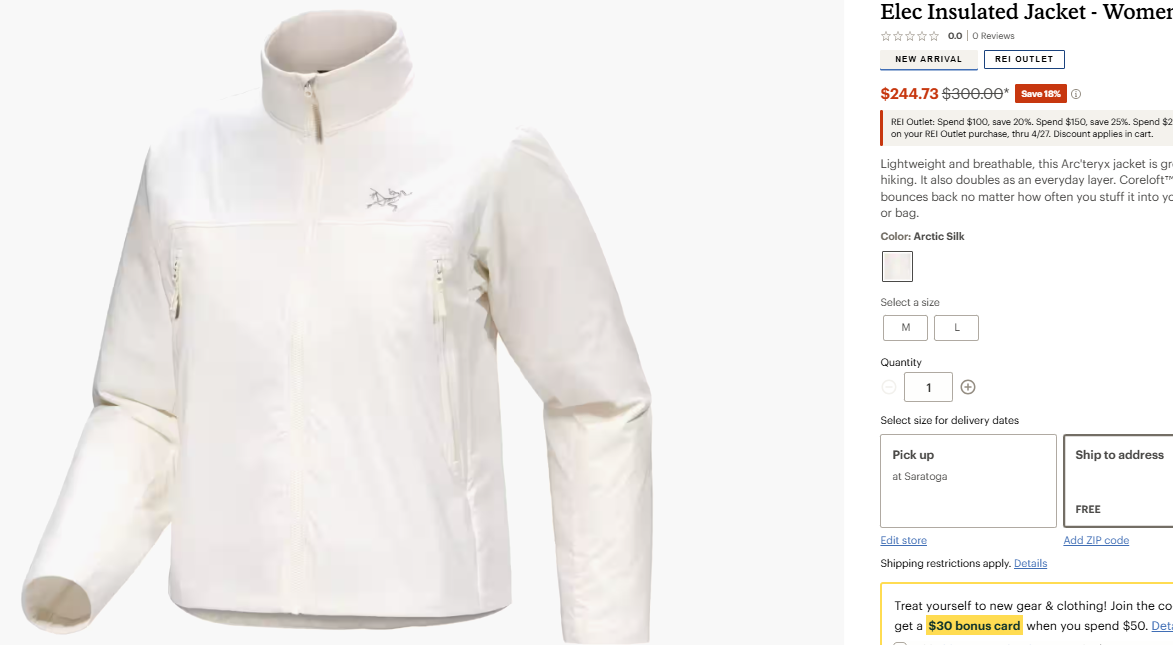 同樣是史低價的Elec Jacket,售價$171,性價比超高。