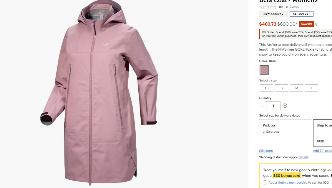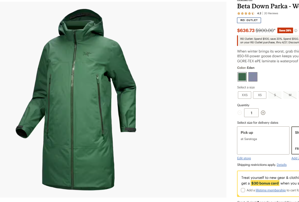想要保暖又輕便?這款Beta Down Parka低至49折,售價$445,非常值得入手。
