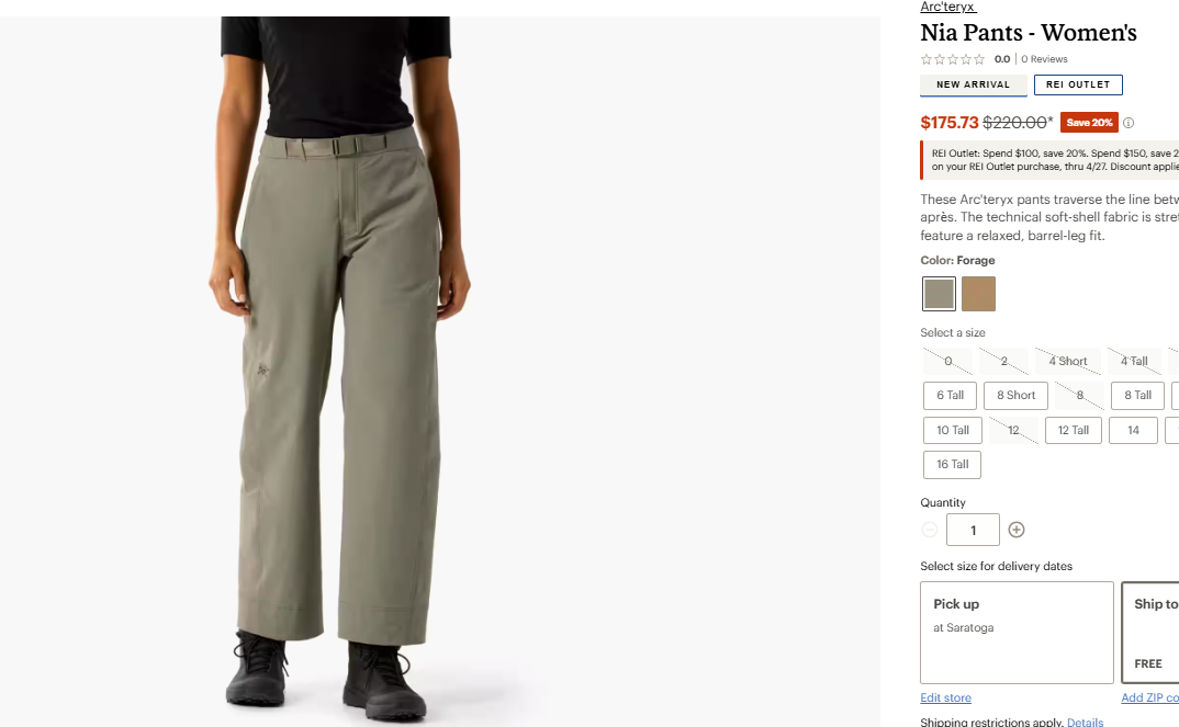 史低價的Nia Pants售價$123,適合各種戶外活動。