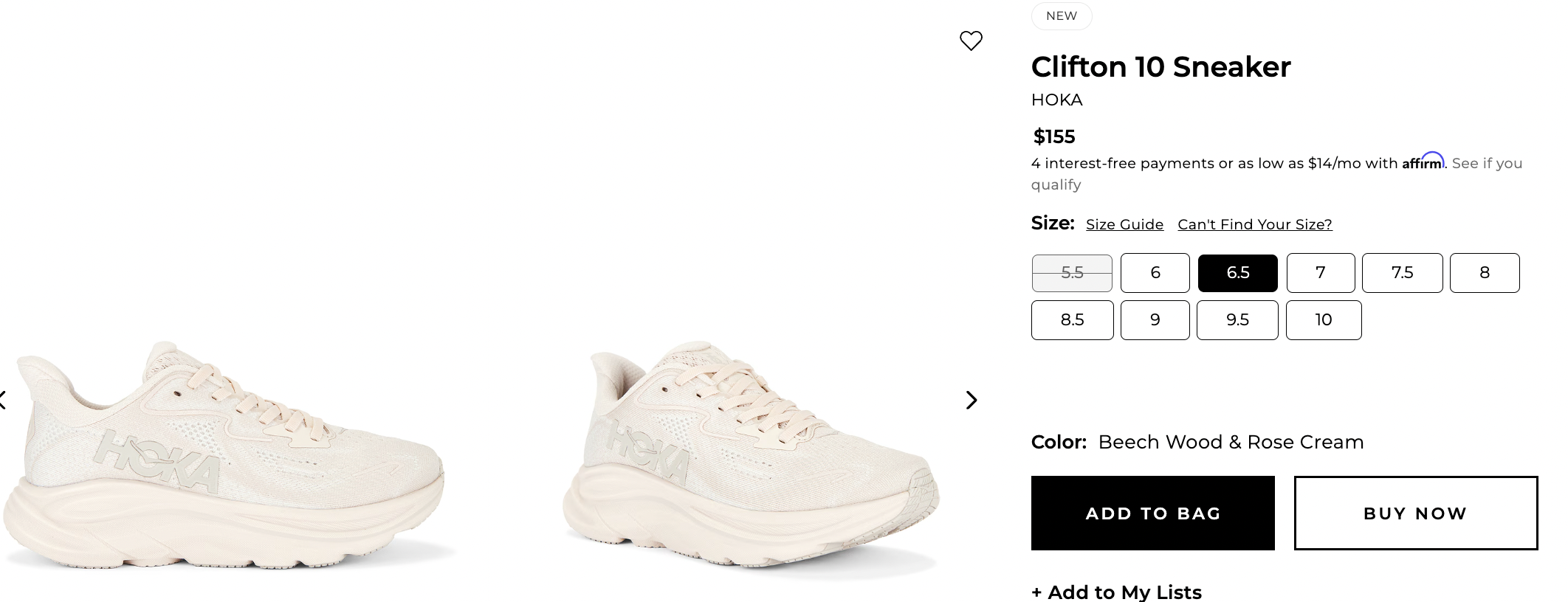 接下來我要推薦幾款必買單品給大家!首先是這雙HOKA Clifton 10 Sneaker,真的是必買中的必買!這雙鞋子不僅輕盈舒適,還能增高,鞋底軟Q又有很好的支撐力,非常適合長時間走路或站立。我自己穿去LA環球影城從早走到晚,腳底依然感覺很舒服,完全不會痛!這款尺碼正常,我穿US6剛剛好,配色也非常百搭。喜愛的朋友一定要先加購物車,以免錯失良機。