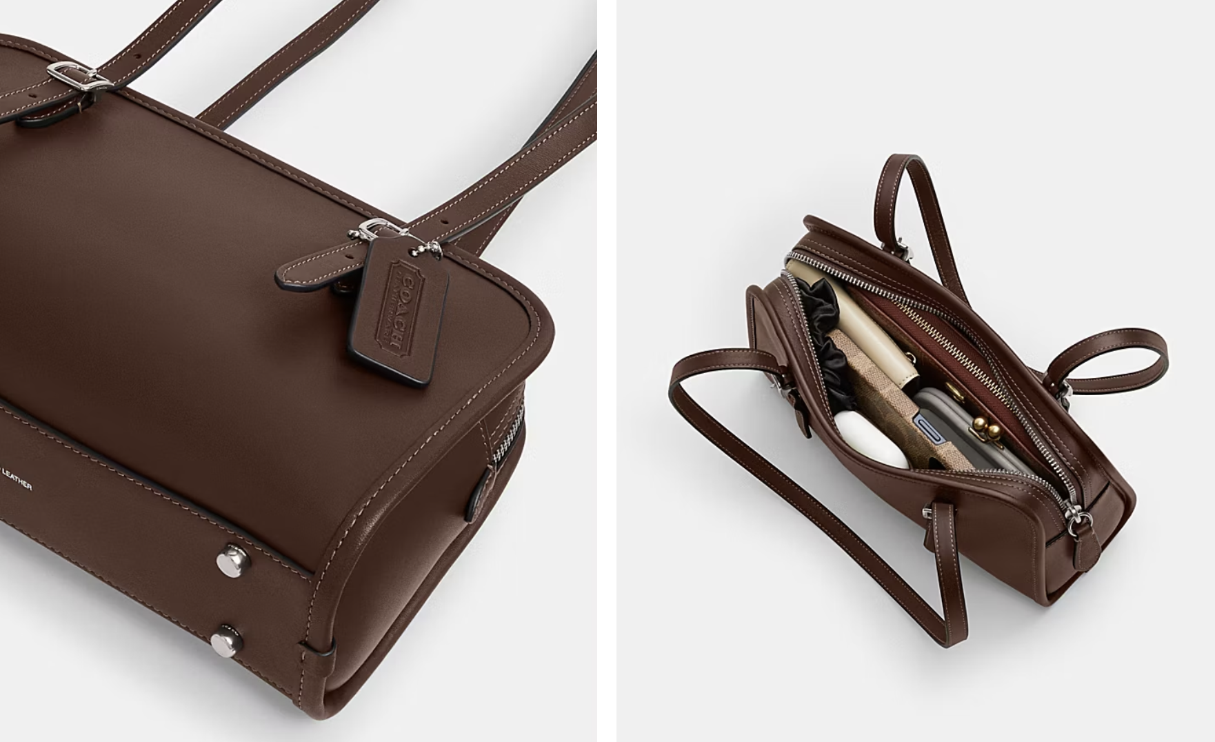 接下來讓我推薦幾款必買單品吧!像是這款Coach Originals Swing Zip Bag,設計感十足,充滿The Row保齡球包的風格。折後價僅需$316美金,約NT.9790未稅,相當於台灣定價的55折;即使抽到關稅,也才約NT.10964,依然划算!