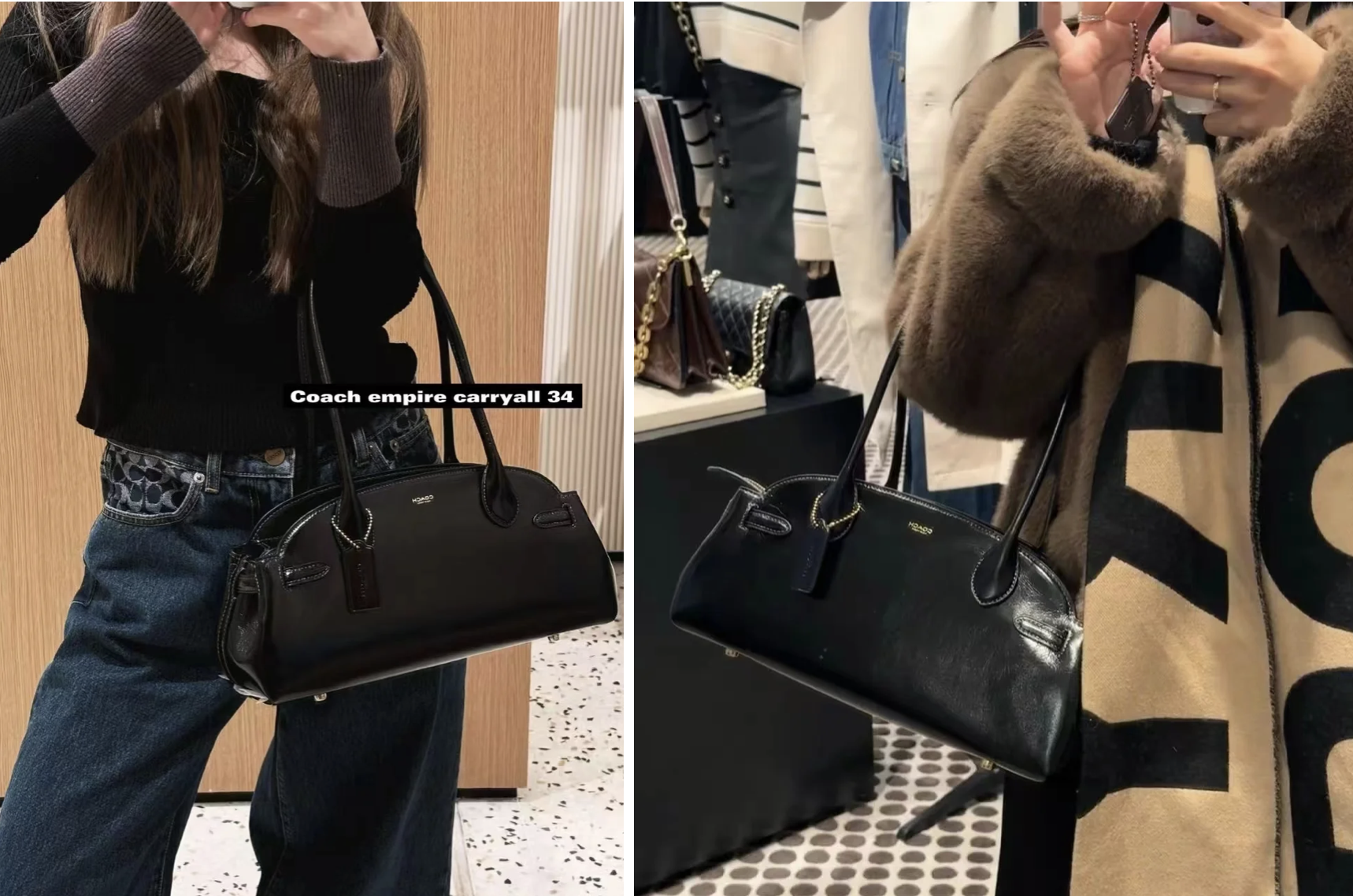 再來是Coach系列的好物推薦,像是這款Coach Glazed Leather Empire Carryall 34 Bag黑色托特包,折後價格為$360美金,相當於NT.11219未稅,台灣定價NT.19,800,換算下來是56折未稅,含稅價則約NT.12172,相當於62折,真的是超值入手價!