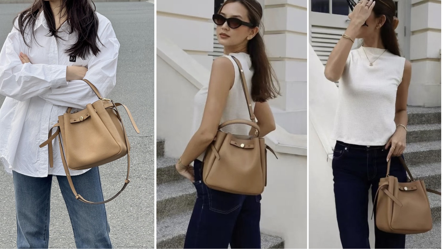 接下來我要推薦幾款必買單品,首先是這款Tory Burch Romy Bucket Bag,餅乾色的水桶包真的太美了!台灣定價NT.18900,但在美國官網打完8折後僅需NT.9,649未稅,相當於5折,就算抽到關稅補12%也才約NT.10806,含稅價仍是超值的57折!包包皮革柔軟輕盈,背帶可肩背或斜背,非常實用百搭。