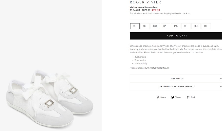 ♥ Roger Vivier Viv low lace white sneakers,另一款Viv Low同樣只要627美元(約NT19,280),全尺碼都有現貨,真的是太誇張的好康啦!