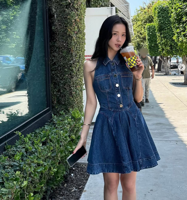 Jisoo同款的Self-Portrait Denim Sleeveless Flared Mini Dress單寧短洋裝也參與這次折扣。