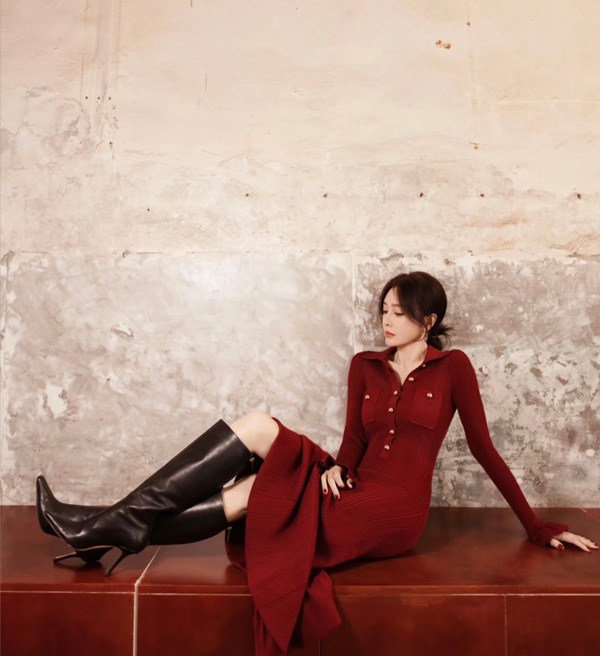 過年想要紅色系的單品嗎?秦嵐同款的Self-Portrait Knitted Midi Dress絕對是你的首選。