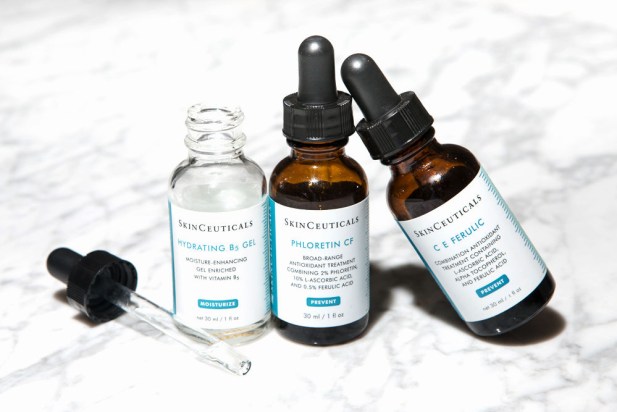 @( c e ferulic )維生素CE複合修護精華液,含高濃度左旋C與阿魏酸,美白、抗老一把抓,但乾性與敏感肌請謹慎使用。