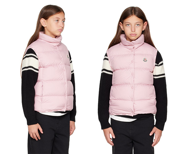 像是這款大童Moncler粉色Badia羽絨背心,台灣的朋友可以透過以下連結購買: