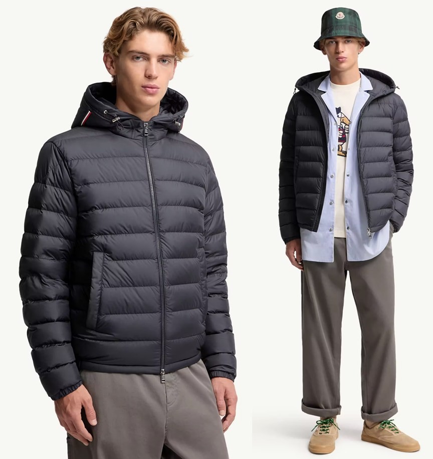 ▶ VERMEILLE SHORT DOWN JACKET WITH HOOD Moncler,另一款Moncler男裝實穿款Vermeille,折扣後價格為1079.2美元,含稅約新台幣34739元,相較官網售價59500元,一樣是58折的優惠!