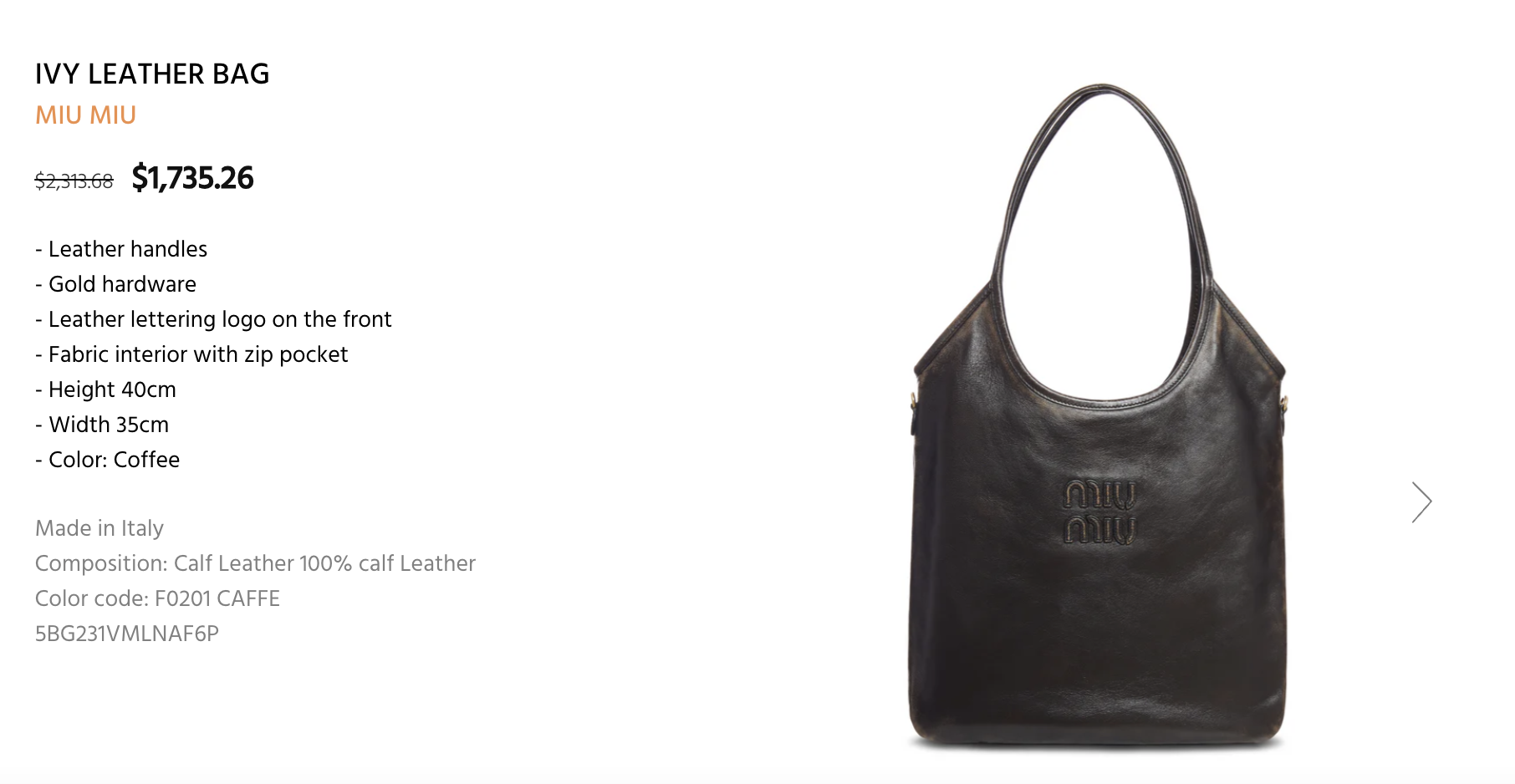 Miu Miu粉絲注意啦!以下推薦幾款必買包款。例如這款Miu Miu BEAU LEATHER BAG大尺寸黑色公文包,原價NT.125,000,現在只要NT.80,796(約$2650美金含稅),相當於台灣定價的64折、美國定價的63折,真的是前所未有的史低價!