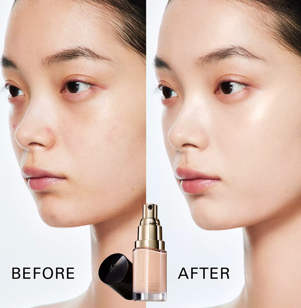 看看以下model使用前後的對比照片,是不是被那種自然水光肌的透亮感深深吸引?這也是為什麼我一直鍾情於Suqqu家粉底液的原因!