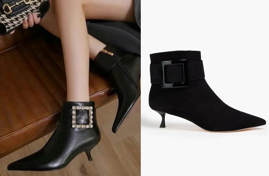 ♥ ROGER VIVIER Buckled leather ankle boots:這雙帶有水鑽裝飾的小貓跟短靴未稅價只要649美元,相比歐洲官網動輒破兩千歐的價格,真的非常划算!建議選擇正常尺碼即可。