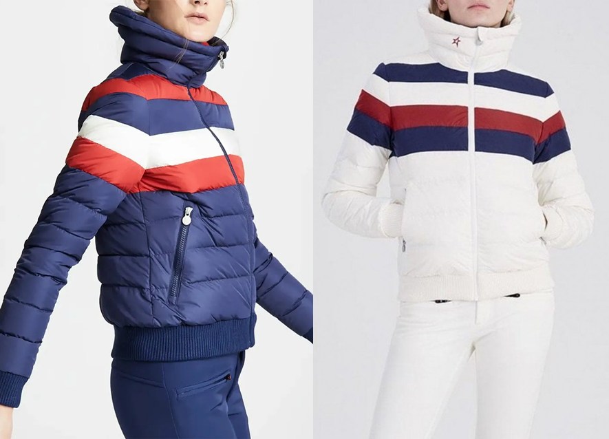 ♥ ( PERFECT MOMENT Queenie條紋羽絨滑雪外套 ) 。這件輕便又好看的羽絨外套只需搭配飽和色雪褲就能拍出美照,XS剛剛好。